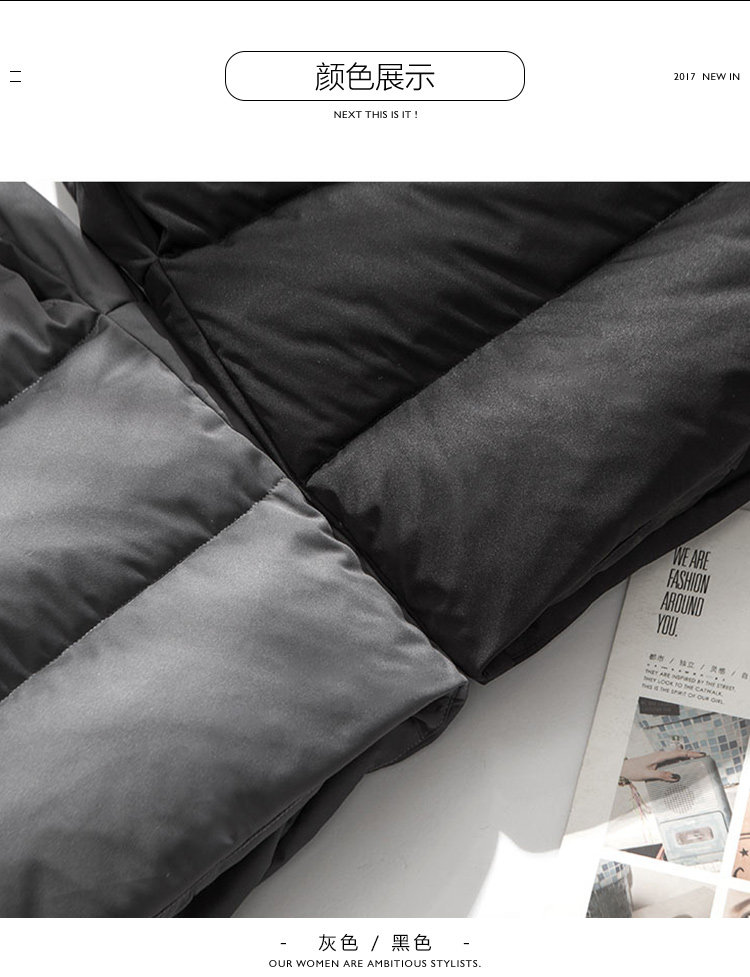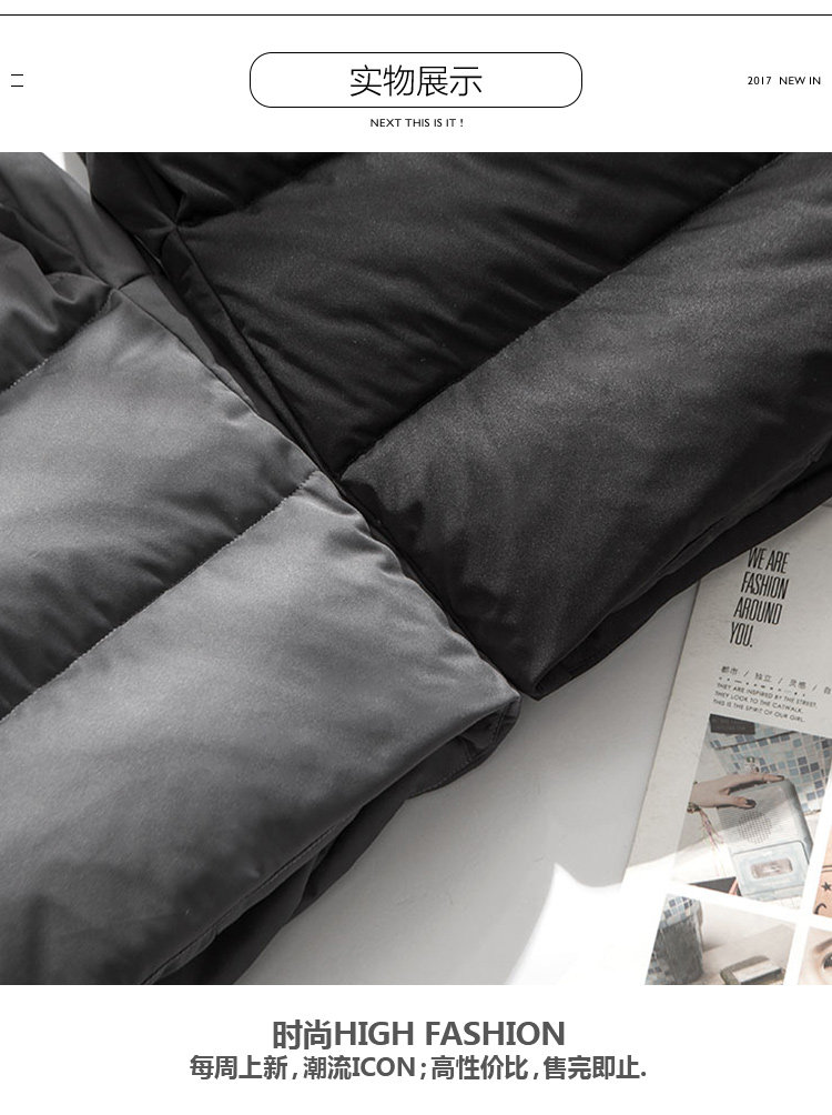 | 主 料:聚酯纤维里 料:聚酯纤维 中间夹层胆料:聚酯纤维填充物:白鸭绒(含绒量90%)鸭绒克重:(DUCK DOWN WEIGHT)S M L XL 252g 265g 278g 292g 颜 色:黑色、灰色 |