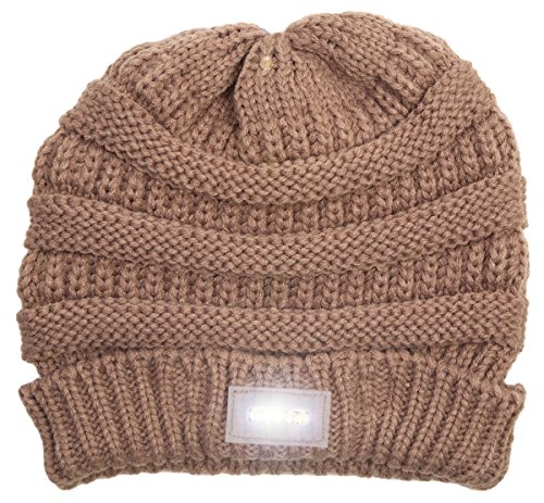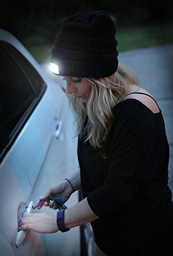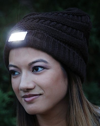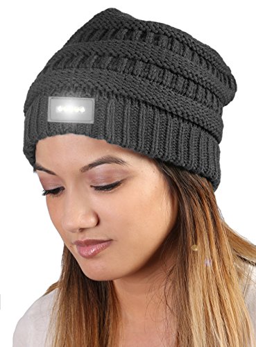 -. Feature : GREAT LOOK: This one-of-a-kind day night beanie is perfect for the gadget lover as well as the fashionista! Wear it with the logo side in front during the day, with any outfit from casual to dressy. Turn it around to the opposite side at night and still look chic while having a bright enough light to see and stay safe outdoors. Looks great with perfectly styled hair or easily covers up a bad hair day. Great unisex look with color choices for women and men. / GREAT FIT AND CARE: One size fits most. This classic knit beanie combines plenty of stretch with a comfortable, snug fit and measures 9.5" by 7.5" lying flat. With a 2" folded cuff, this hat was designed with enough cushion to keep your head comfortable when the light and battery pack are in the front or the back. Spot clean only. / WHEN TO WEAR: Wear this trendy fashion beanie during the day at any time with any outfit. When it gets dark out, simply turn it around and turn on the LED light to illuminate your path at night. Great to switch on at night while exercising, walking your dog, getting into your car, evening festivals, events, and more. Great to give to your kids when they walk to school, or keep it in your car in the winter in case of an emergency. / GREAT QUALITY: This super warm beanie is 100% acrylic. An on/off switch easily controls turning on/off 5 LED light bulbs. When you receive the beanie, the lights are ready to turn on, as inside the battery pack are the two (replaceable) CR2032 lithium batteries (needed to power the lights). The battery pack is securely kept in place by a small elastic band. The cuff of this hat also includes Velcro beside the battery pack to further keep it secure. / WHY FUNKY JUNQUE? We maintain a 100% POSITIVE RANKING on Amazon. HOW? Quality in fashion products, low P.R.Icing, quick delivery, and world class customer service result in happy (and many repeat) customers.
