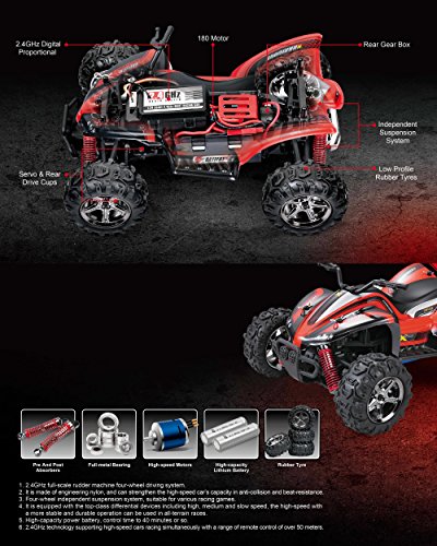 -. Feature : Newest 1:24 full-scale RC off road Pickup . 2.4GHz radio technology, wide control range up to 100M. Powerful motor, maximum speed is up to 45 km / h. high speed stunt RC Pickup / Full metal gears parts. Adopt the high toughness explosion - proof PVC shell With independent shockproof system, it can prevent damages caused by the vibration effectively / With Hi-Q rubber wheel, anti-skid, perfect experience.Rubber wheels prevent slippery Realistic road Pickup design, fashion and cool / Applicable field: ground, grass land, sand land / Please note: The car is very high speed as much as 32MPH. Please avoid hit object when it high speed running.