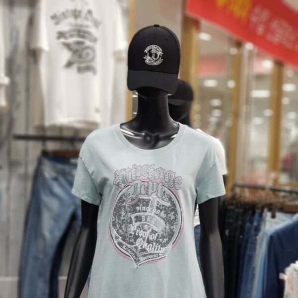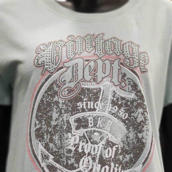 시원하면서도 전면에 빈티지한 프린팅이 포인트인 아주 멋스러운 버커루 여성 면 30수 빈티지 롱기장 반팔티셔츠입니다.