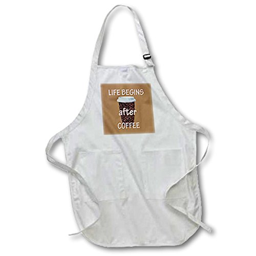 3dRose apr_214172_4 Life Begins After Coffee. Popular Saying Full Length Apron, 22 by 30", Black, with Pockets