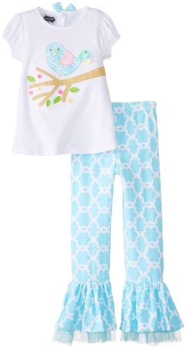 -. Binding : Apparel -. Brand : Mud Pie -. Department : girls -. Feature : The open back adds that sweet unexpected detail / The refreshing springtime patterns make this perfect for Easter -. Label : Mud Pie Girls 2-6x -. Manufacturer : Mud Pie Girls 2-6x -. Model : 1112103 -. ProductGroup : Apparel -. ProductTypeName : PANTS -. Publisher : Mud Pie Girls 2-6x -. Studio : Mud Pie Girls 2-6x -. Title : Mud Pie Little Girls' Little Chick Top and Pants