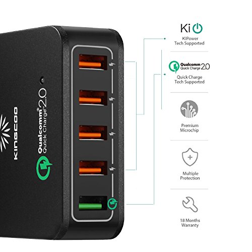 -. Title : Desktop Charger, [Qualcomm Certified] KINGCOO 40W 5-Port USB Charger Desktop Charging Station Wall Charger USB Power Adapter with Quick Charge 2.0( Quick Charge 5V/2.4A 9V/2A 12V/1.5A, Smart Charger 5V/2.4A )