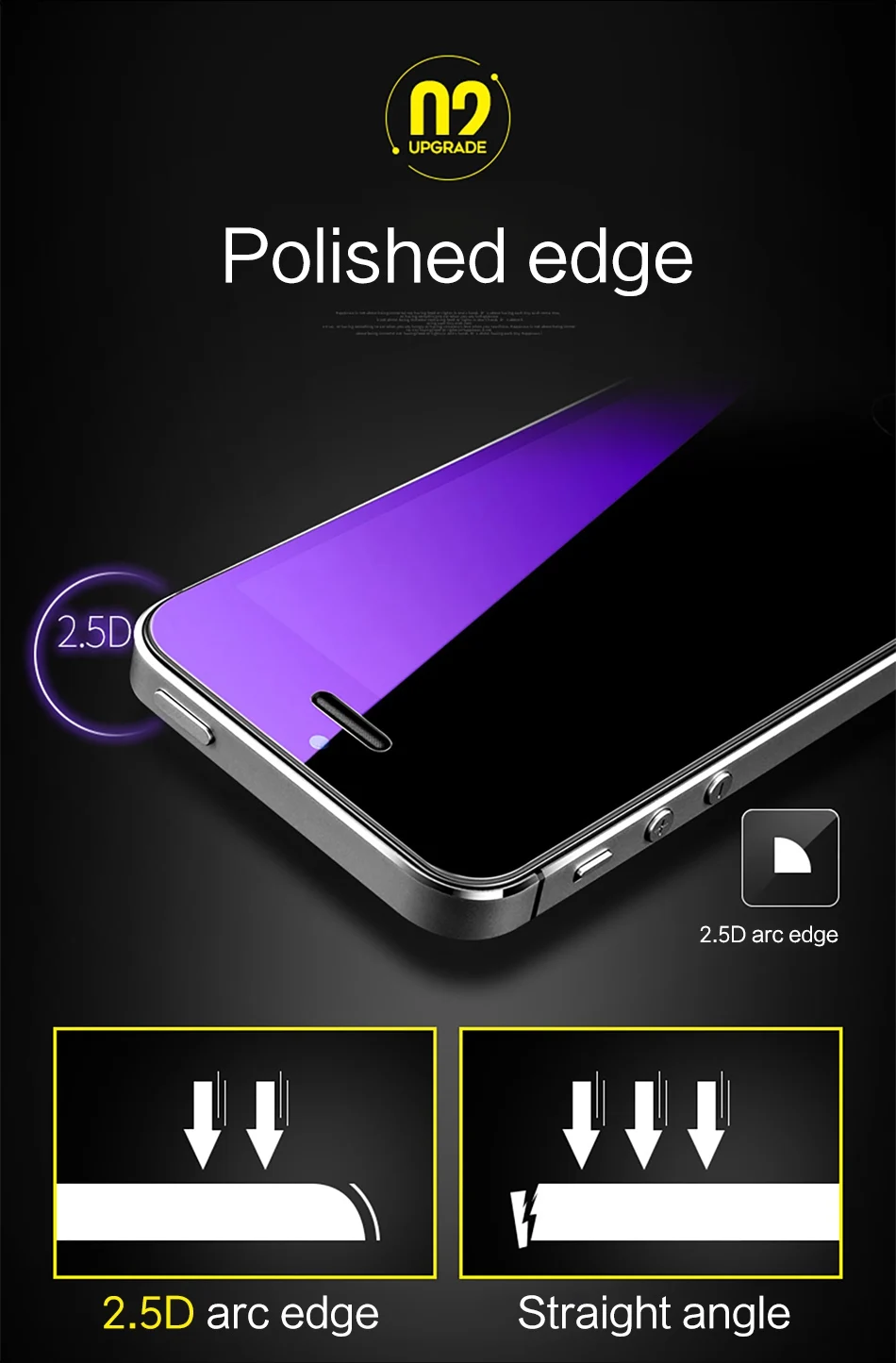 Material:9H 2.5D Tempered Glass