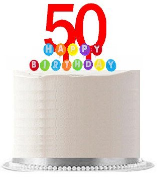 Item#050WCD - Happy 50th Birthday Party Red Cake Topper & Rainbow Candle Stand Elegant Cake Decoration Topper Kit