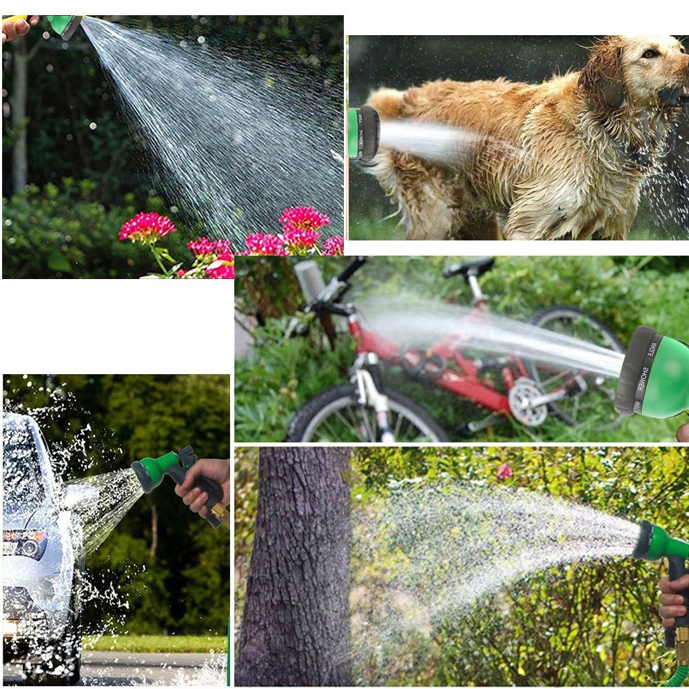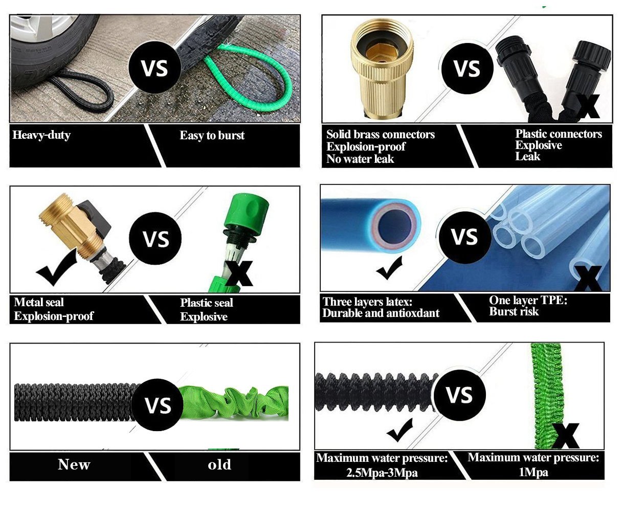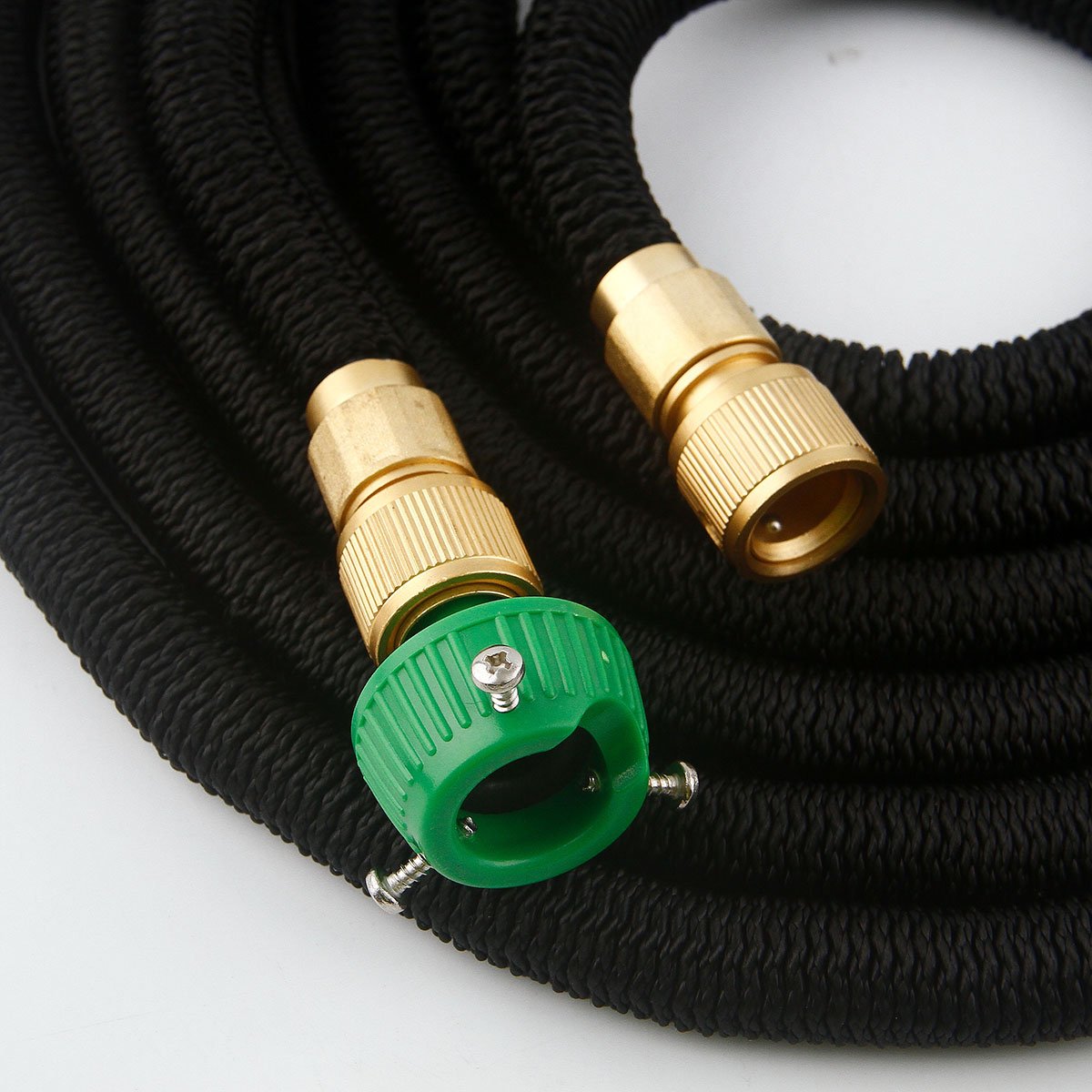 The hose can be expanded to 3 times its length with water and shrinks to its original length when water is released.