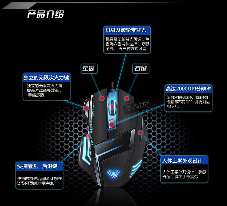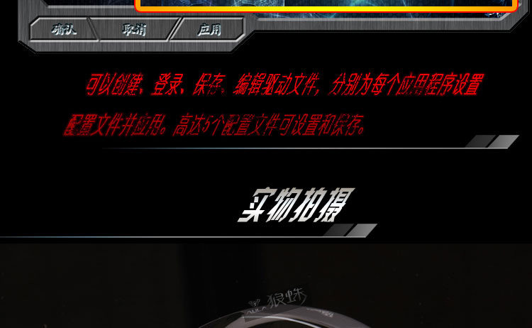 亲,这款鼠标绝对物有所值哦,光外表就霸气侧漏了,它使用的是配件均是专业游戏鼠标的需求哦,独特的驱动芯片,内置强大的驱动软件,可自定义设置鼠标的按键功能哦。