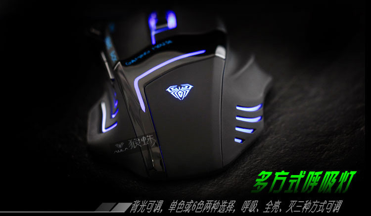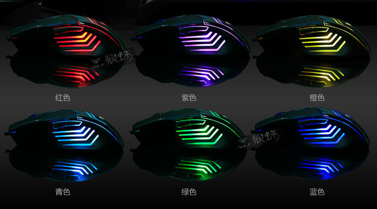 鼠标外观颜色只有一种霸气黑哦,但是有6种颜色呼吸灯循环全彩/呼吸自由交换,配合您的不同心情随时设置鼠标颜色。灯光也可以关闭。进入驱动页面可设置。