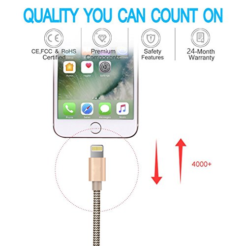 Strong Compatibility:Our iphone cord works every time on apple iPhone 7/7 Plus/SE/6s/6s Plus/6/5/5c/5s, iPad Pro/Air 2/Air/mini 2/mini 3/mini 4, iPod devices. Be sure you want 1.6Ft 3Ft 5Ft braided lightning charging cables.