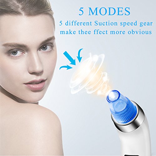 - FIVE LEVELS-The suction blackhead remover has 5 levels, you can select suitable suction strength to clean and resurface your face, the strongest suction strength is for the serious skin problems and the lowest suction strength for the sensitive skin problems.
