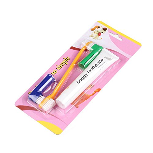 -. Binding : Misc. -. Brand : PanDaDa -. Feature : Vanilla Flavored toothpaste,provides a clean sweet breath for your pet. / The Double-Sided Toothbrush has a small and large toothbrush head for those hard to reach spots! / Toothbrushes for easy reach to all of your pet's teeth! Bonus: set of 2 finger-brushes! / Great to use to brush any dog, puppy, cat 's teeth; Helps to reduce plaque and tartar buildup / Package includes: 1*toothpaste+1*toothbrush+2*replacement brush heads(color random) -. Label : PanDaDa -. Manufacturer : PanDaDa -. MPN : YHX-0742 -. PackageQuantity : 1 -. PartNumber : YHX-0742 -. ProductGroup : Pet Products -. ProductTypeName : PET_SUPPLIES -. Publisher : PanDaDa -. Studio : PanDaDa -. Title : PanDaDa 3 in 1 Pet Dog Toothpaste Toothbrush Finger Brush For Pet Oral Care Set