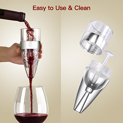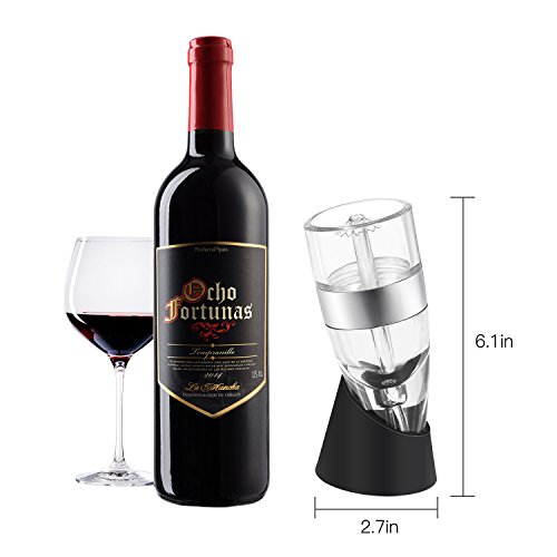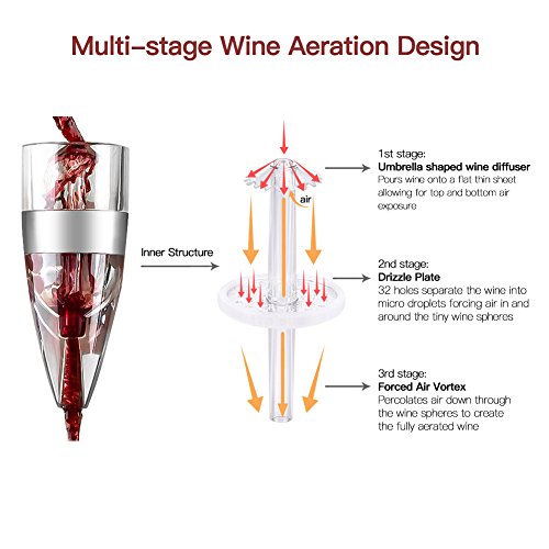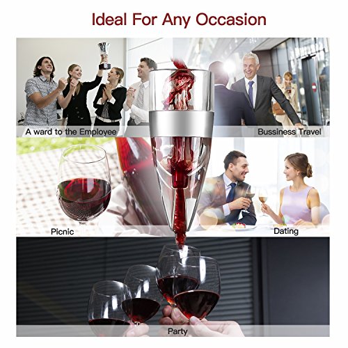 More Reliable. Made of food grade silicone, crystal clear acrylic and stainless steel, comes with FDA-approved patented design, durable for long years and great for wine lovers. Warranty Three Years Satisfaction Guaranteed- Return For A Full Refund If You Are Not Completely Satisfied Package includes: 1 ×wine aerator 1 ×aerator stand 1 ×travel pouch 1 ×gift box 1 ×user manual