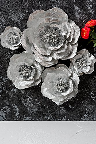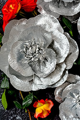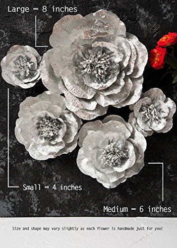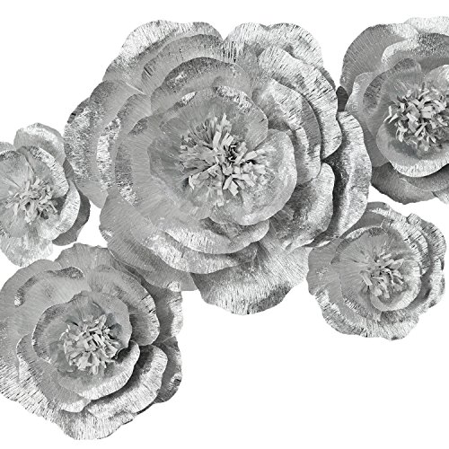 Paper Flower Decoration, Handcrafted Flowers, Crepe Paper Flowers Shiny Silver Set Of 5 For Wedding Backdrop, Baby Shower, Nursery Wall Decorations,Garden Party Photo Booth,Bridal Shower,Archway Decor