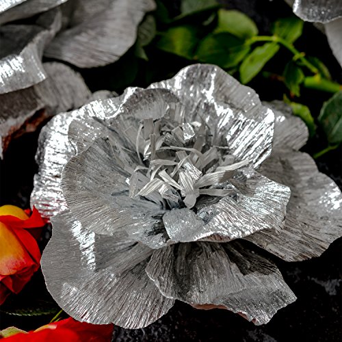 - Material:Premium quality crepe paper is exquisite, Single side flash silver, the back is white, Each rose flowers is completely handmade and unique