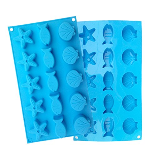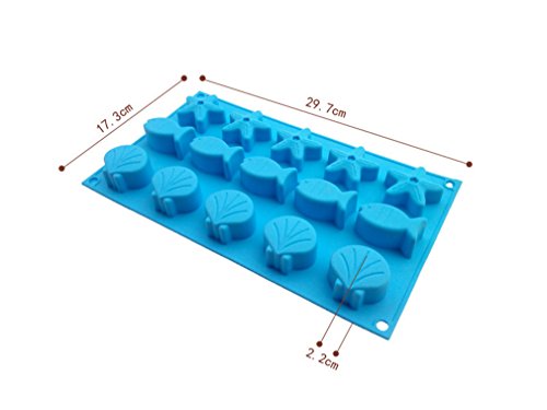 Yunko 15 Cavity Ice Tray Starfish Shell Fish Silicone Mold Style Ice Mold Chocolate Pudding Candy Mold