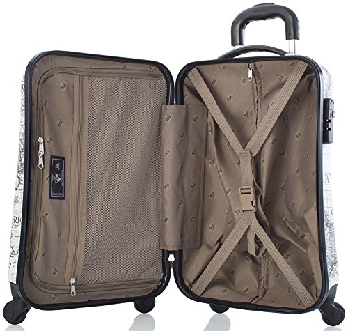 Product Description The Classical World 21" Spinner from Heys America is the perfect carry on travel bag for your trip with its exterior world map design. The print is protected by a layer of glossy clear coat which gives it its brilliant shine as well as improved scratch and scuff protection. This case is lightweight and feels even lighter on the smooth Japanese made spinner wheels. The built-in TSA lock keeps your travel items safe and sound inside while traveling. The interior features a specialty lining and a divider with mesh pocket. 0