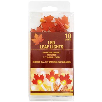 Fall Indoor Battery-Operated Strands of Maple-Leaf-Shaped LED Lights, 3 ft.