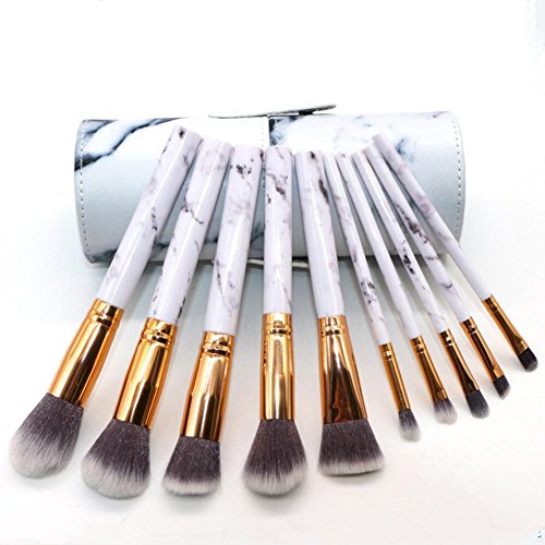 - ❤Coshine 10pcs Pro Marble Makeup Brushes Set with Marble Brush Holder, For Loose Powder, Contour, Shade, Highlighter, Eyeshadow and Foundation