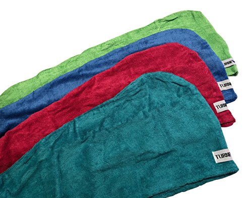 (Turbie Twist)/Styling Tools/Styling Accessories/DIRECT FROM USA/Turbie Twist Cotton Hair Towel (4 Pack) Pink, Blue, Teal, Lime Green