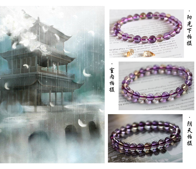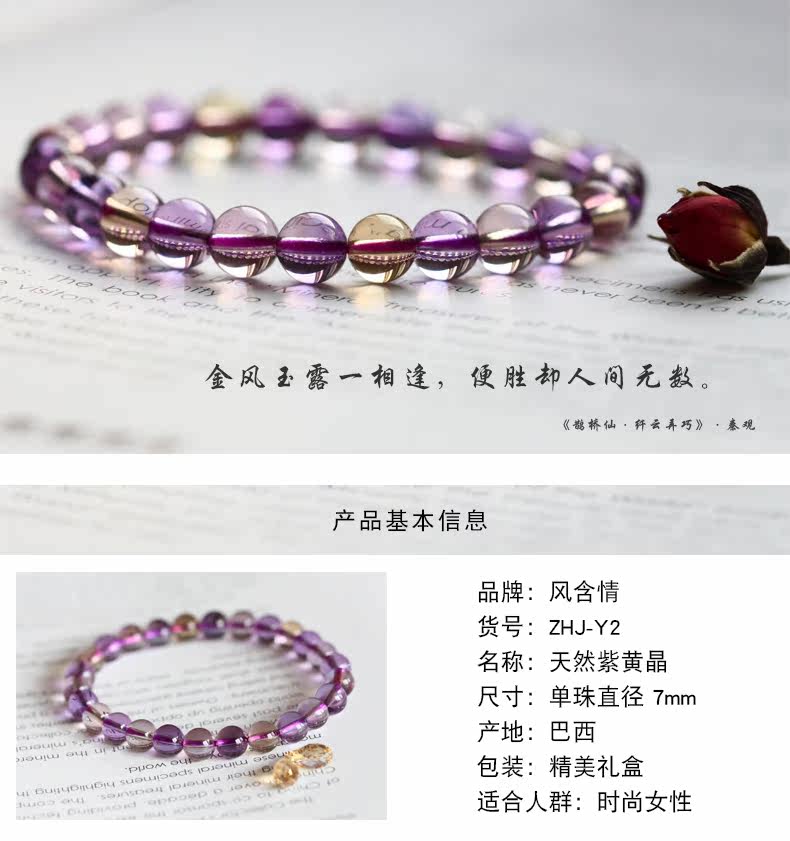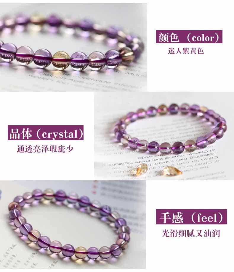 天然水晶 紫黄晶圆珠手链 紫水晶黄水晶手串 饰品女款