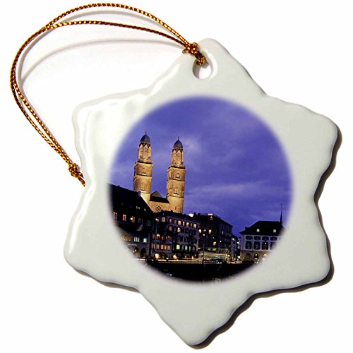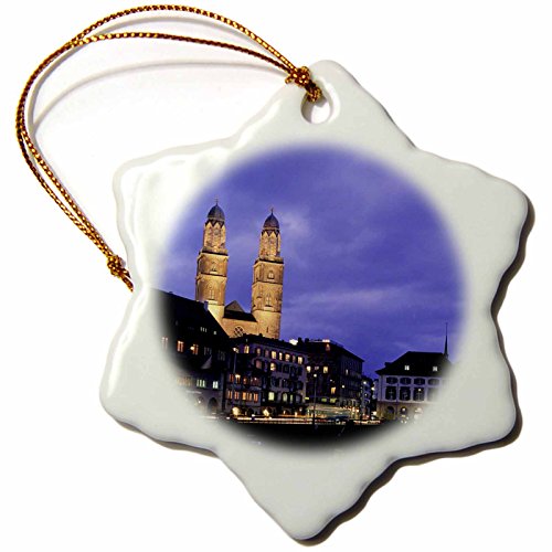 3dRose orn_82661_1 Switzerland, Zurich, Cathedral, Limmat River EU29 WBI0688 Walter Bibikow Snowflake Porcelain Ornament, 3-Inch