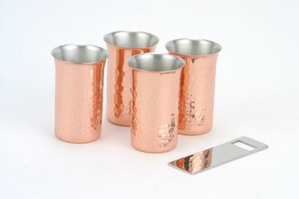 熱伝導性に優れているため、銅カップを使用して冷たい飲み物を飲むと、口当たりや手に伝わる清涼感は格別ですサイズ約径5.8×H9cm、栓抜き:約3.5×11cm個装サイズ:34.3×12×6.8cm重量箱入重量:560g素材・材質本体:銅(内面:錫メッキ)、18-8ステンレス(栓抜き)仕様容量:約160mlセット内容ビールカップ×4、栓抜き×1製造国日本 ビールにオススメ! ------ ココがポイント! ------ ●クリーミーでなめらかな泡、突き抜ける爽快な喉ごし ●優れた熱伝導性で器自体がすぐに飲み物と同じ温度まで下がり、冷たさを維持します 熱伝導性に優れているため、銅カップを使用して冷たい飲み物を飲むと、口当たりや手に伝わる清涼感は格別です