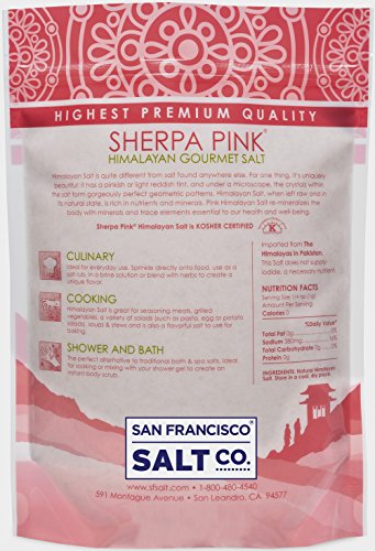 TASTES GREAT -- Our 100% pure Himalayan Pink Salt is the perfect addition to any meal! Sherpa Pink Himalayan salt is great for seasoning meats, grilled vegetables, a variety of salads (such as pasta, egg or potato salads), soups & stews and is also a flavorful salt to use for baking.