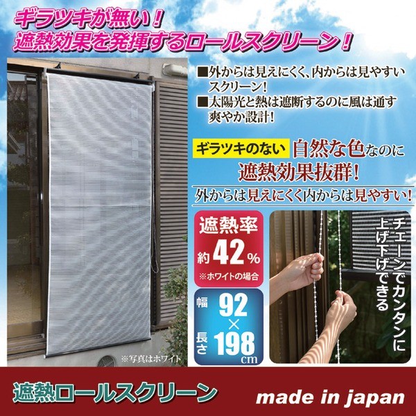 【商品名】遮熱ロールスクリーン(カーテン/サンシェード) 幅92cm チェーン式 日本製 ホワイト(白) 〔日焼け防止/遮光効果/紫外線防止〕