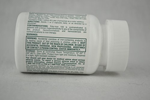 Manufacturer: # 2128353 Brand: Poly Iron Manufacturer: Cypress Pharmaceutical Active Ingredients: Iron Polysaccharide Application: Iron Supplement Dosage Form: Capsule Generic Drug Code: 4580 NDC Number: 60258-0185-01 Strength 150: mg Strength UNSPSC Code: 51192446 Volume: 100 per PackFeature