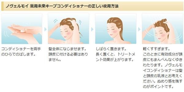 ノヴェルモイのコンディショナーは、髪と頭皮の乳液と同じです。頭皮にうるおいを与えて、最適なコンディションに整えます。枝毛、切れ毛を補修し、ツヤとまとまりのある髪に仕上げます。 |