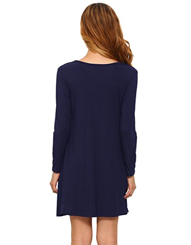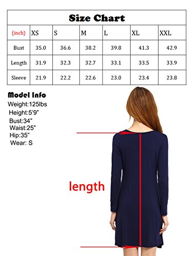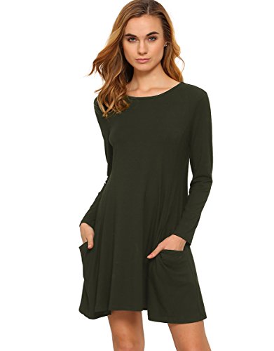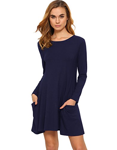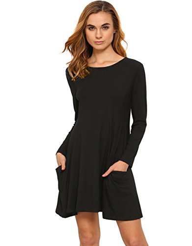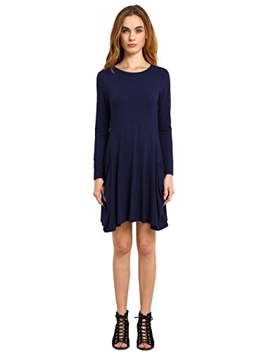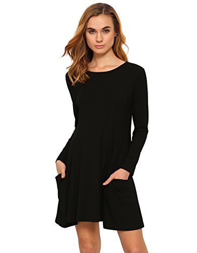 Round neck, long sleeve, two pockets, swing tunic dress.