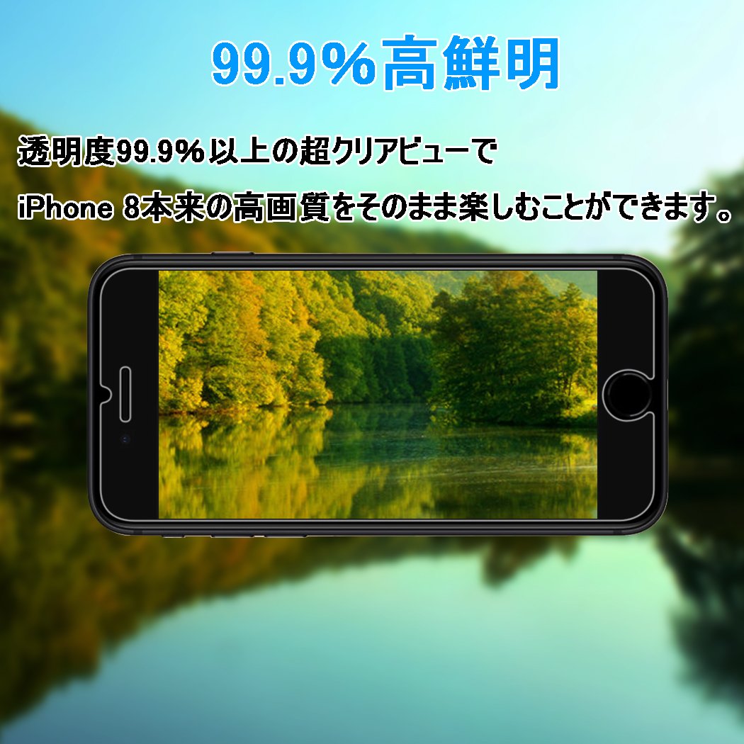 Ultra thin 0.15 mm, light transmittance is 99.9%, giving the elegant and elegant impression that does not feel the presence of the iPhone 8 protective film itself while applying the highest level of protection to the screen.