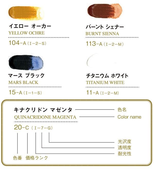 ゴールデンアクリリックスは、普通色全85色のうち60色が、純粋な単一の顔料で作られています。理由は混色をする時ににごりのない・美しい混色ができるように。そして、水やメディウムで薄めても、鮮やかな発色が保たれるように。残りの普通色25色は、グレーや鮮やかな黄緑・パステル色など、混ぜ合わさなければ作れない色。あるいは色の深みを増すために、あえて異なる顔料を加えた色などです。 |