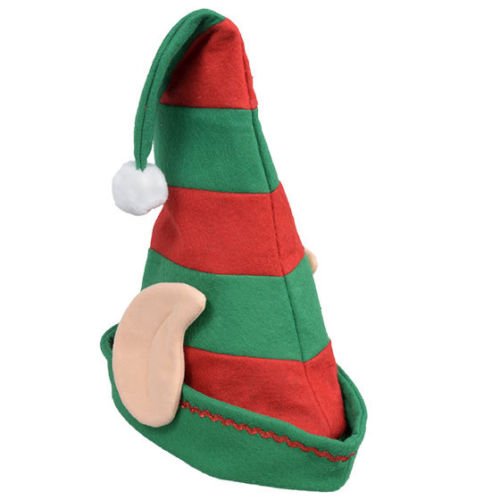 Red Green Striped Holiday Xmas Felt Stocking Cap Hat With Dwarf Elf Hobbit Ears