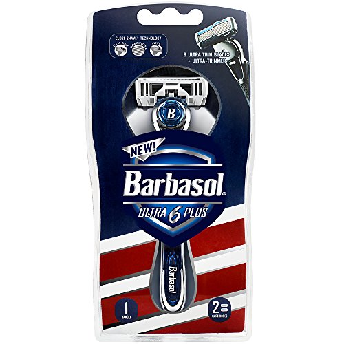 Barbasol Ultra 6 Plus Men's Razor with 2 Razor Blade Refills (1 Handle + 2 Cartridges), Mens Razors/Blades