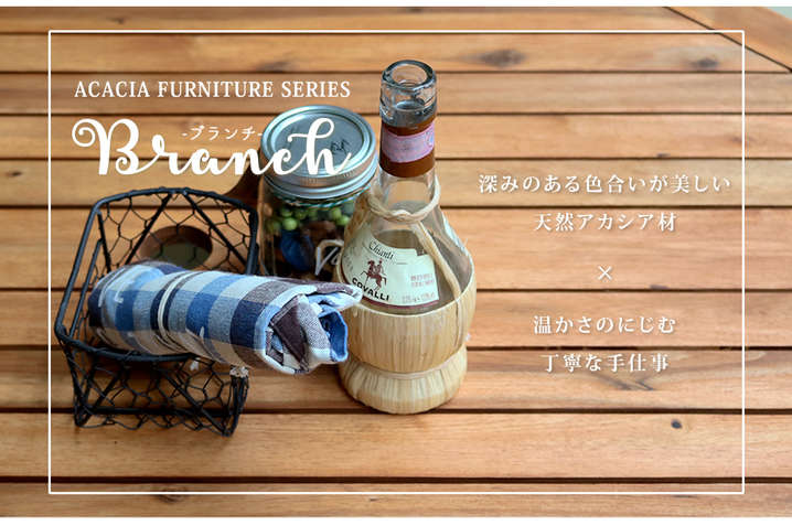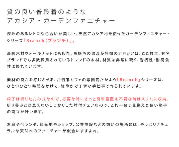 ●深みのあるレトロな色合いが美しい、天然アカシア材を使ったガーデンファニチャー・シリーズ「Branch(ブランチ)」