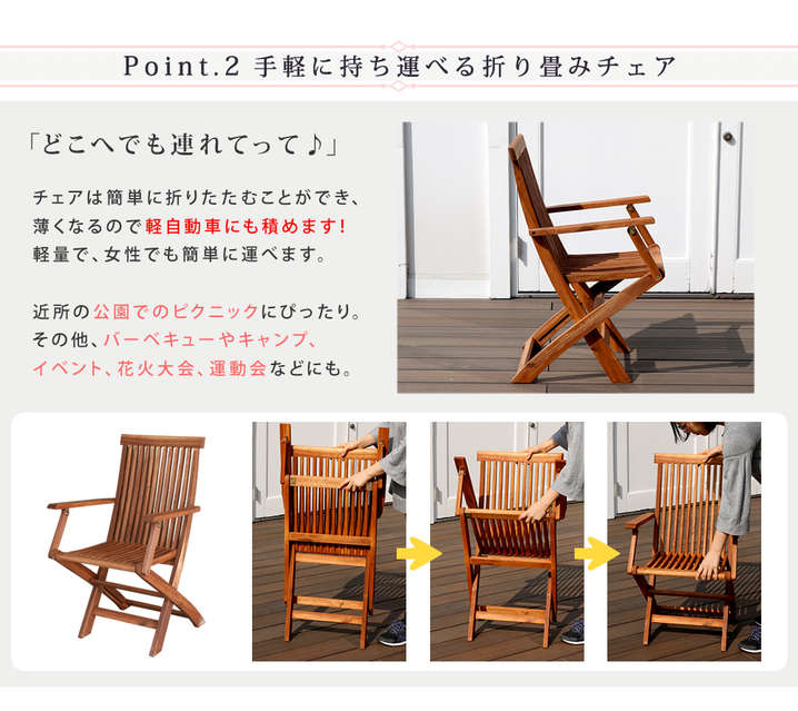 ●椅子は折りたたみ式なので、必要な時にさっと簡単設置&不要な時はスリムに収納