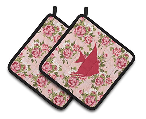 Caroline's Treasures Fish - Angel Fish Shabby Chic Pink Roses Pair of Pot Holders BB1022-RS-PK-PTHD, 7.5HX7.5W, Multicolor