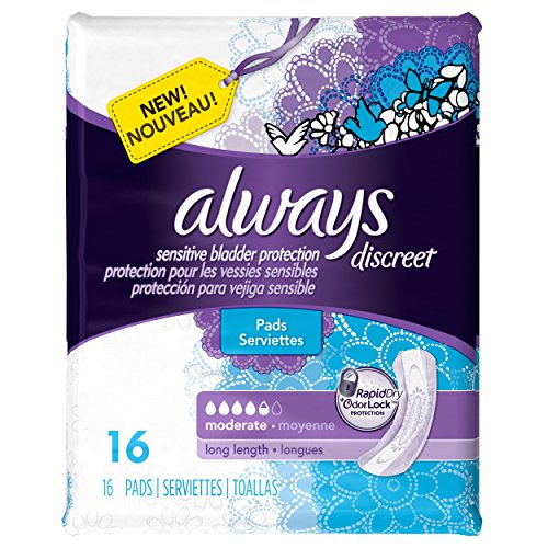 -. Title : Always Discreet Incontinence Pads, Moderate, Long Length, 16 Count