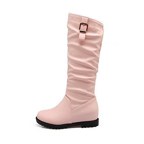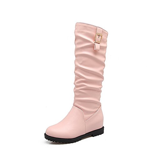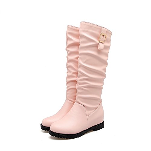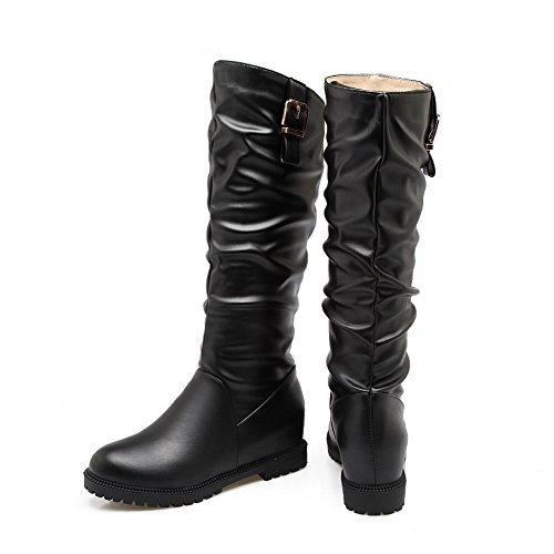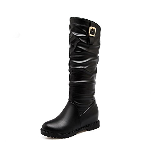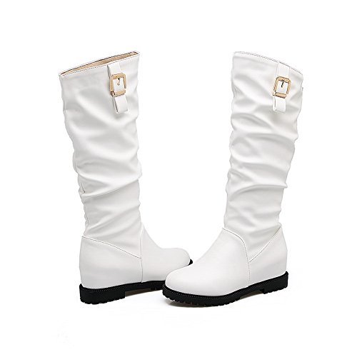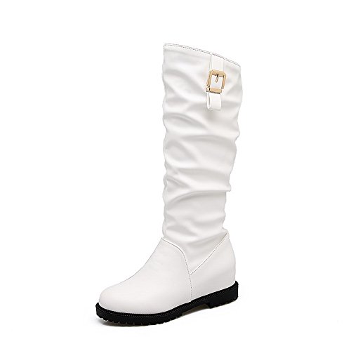 (BalaMasa)/Women's/Boots/DIRECT FROM USA/BalaMasa Womens Ruched Metal Buckles Knee-High Urethane Boots ABL10494