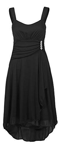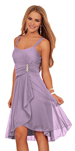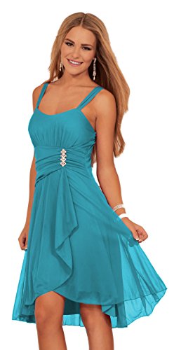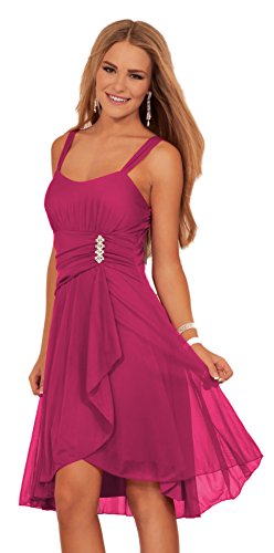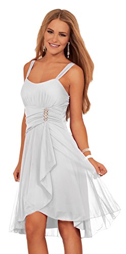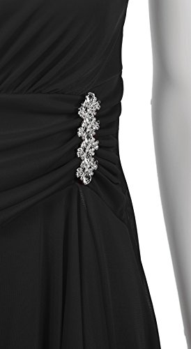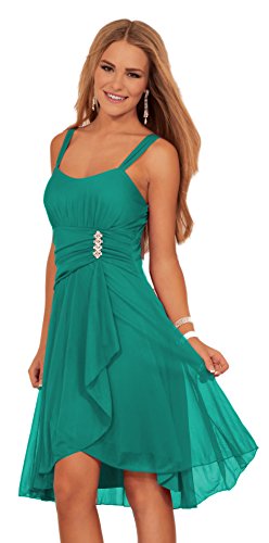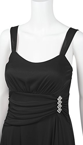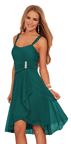 1381: Evening dresses decorated with a stunning rhinestone brooch in light chiffon fabric that drapes beautifully, perfect for a bridesmaid or an evening night out.