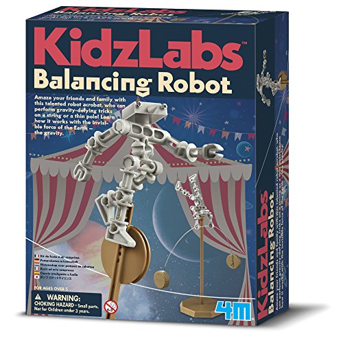 -. Feature : Amaze your friends and family with this talented robot acrobat, who can perform gravity-defying tricks on a string. / Learn how it works with the Earth's own invisible force of gravity. / The set contains a set of robot body parts, weight capsule sets, an arched bar, a stand set, a unicycle set, string, and detailed instructions. / Also required but not provided in this kit are coins and a small Phillips head screwdriver. / This item is not recommended for children 3 years or younger. / Challenge your child's imagination with 4M toys and kits. / 4M educational toys cover a wide range of educational subjects and include science kits, arts and crafts kits, robotics kits, and more. / 4M offers a wide range of toys and kits to let you build a clock, crochet a placemat, or turn your room into a planetarium--all in the name of making learning fun.