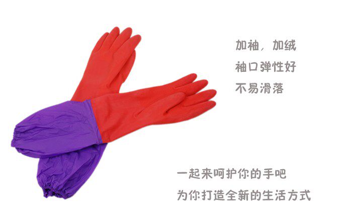 Home Furnishing necessary extension thickening plus villus rubber gloves latex glovesdishwashing gloves