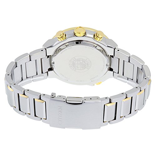 Stainless steel case with a stainless steel bracelet with gold-tone accents.