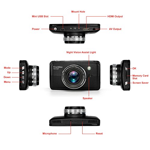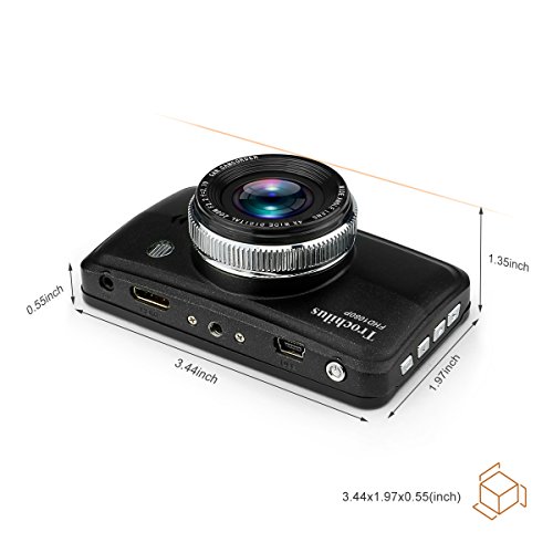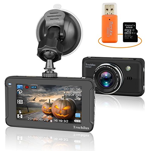 Car Dash Cam,Full HD 1080P 3" Screen DVR Camera Trochilus with 32GB SD Card, 170 Degree Wide Angle Lens , Night Vision, WDR, G-Sensor, Loop Recording, Parking Guard, Car Pry Tool Included