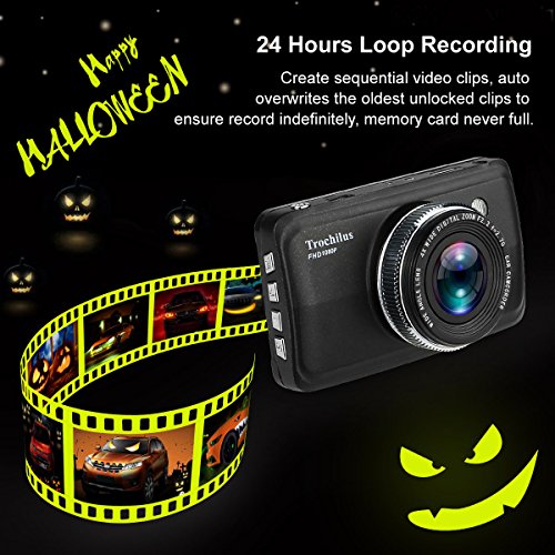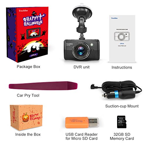Car Dash Cam, Halloween Special Edition Full HD 1080P DVR Camera Trochilus with 32GB SD Card and Portable Card Reader, 170 Degree Wide Angle Lens , Night Vision, WDR, G-Sensor, Loop Recording