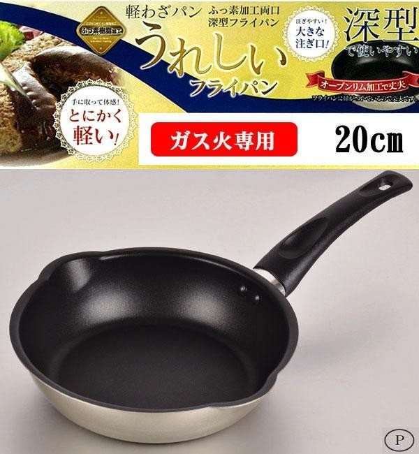 大きな注ぎ口がついているので注ぎやすく、深型で使いやすい!!フライパンに縁がついているので丈夫です。 |