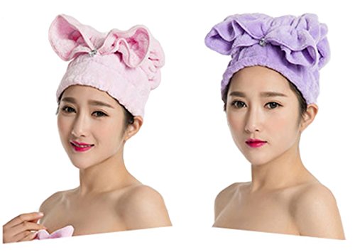 Biowow Hair Wrap - 2 PCS Microfiber Dry Hair Turban Towel Hair Wrap Fast Drying Hair Cap for Bath, Spa, Makeup(Pink & Purple)