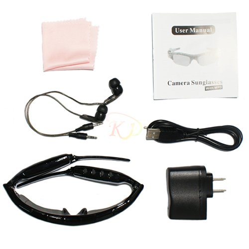 Note: This item is shipped from China(Hong Kong); Delievey time: 10-15 business days. /br Specifications: /br Profile: 160mmL x 160mmW x 36mm(LxWxT) /br Weight: 50g/br Video: Support AVI format, 640 x 480 /brresolution Frame Freq: 20fps/br Picture format: JPG, 1280 x 960 Pixel/br Support MP3/WAV music formats /br USB: USB2.0, connect with PC no drive needed/br Features: /br Power Supply built-in 450mAh/3.7V li-polymer battery /br Power duration: 4-5 hours (Video), 10 hours (camera 1 photo/second), 6 hours (playing MP3) /br Photo Storage: 70 000 photos/4Gb /br Video Storage: 200min/4Gb /br Music Storage: WMA format (64kbps) 128hours/4Gb, MP3 format (128kbps)64hours/4Gb/br Power Adaptor: 5V DC /br Camera hardware resolution: 1.3Mpixels /br Recording Speed:30fps/br Reading Speed > 700kbs, write >500Kbs /br Power Consumption: <0.4W Photo Format: JPEG /br Physical weight 66g with battery /br Working Temperature: -5 C + 50 C /br Package: /br 1 x Sunglasses spy camera/br 1 x User Manual/br 1 x AC Adaptor/br 1 x USB Cable/br 1 x Glasses Close/br 1 x Glasses Bag/br 1 x earphone/br 1x Nice Gift /br Note:There is no free micro SD card in the package, you need to buy one for the item!/brFeature