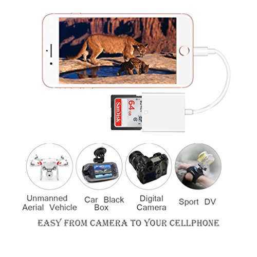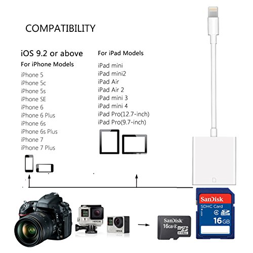 ✔ COMPATIBLE FOR IOS SYSTEMS--- SD card reader adapter compatible with all iphone and ipad with iOS 9.2 and up. this brilliant product also can be useful for Dash cam, home camera,sport camera, Unmanned Aerial Vehicle , etc.